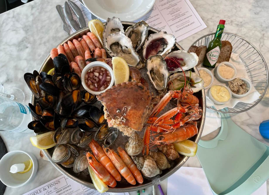 I still remember the first time I sat on their sea-facing terrace with a glass of white wine and a dozen oysters. The ocean was just metres away. There’s something incredibly indulgent about slurping down oysters while watching the waves roll in. Riddle & Finns offer both East and West Sussex oysters, and the champagne pairing was absolutely divine. It’s romantic, elegant, and relaxed all at once.